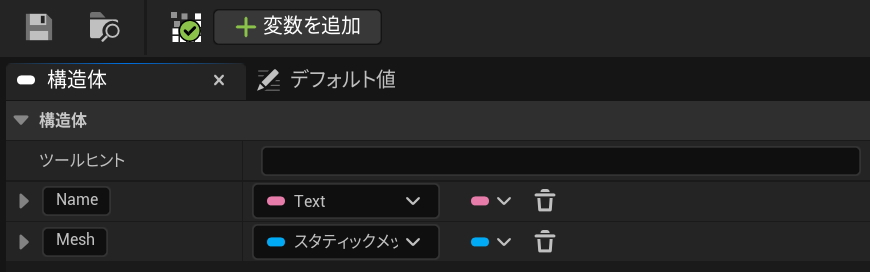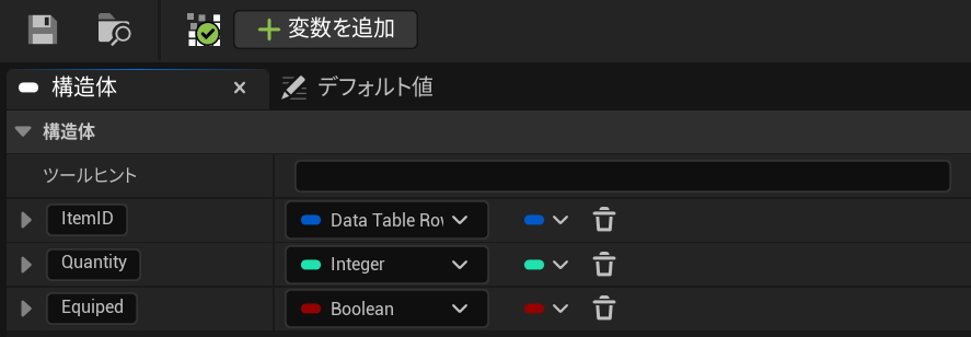 S_Itemを開き、+変数を追加をクリックして構造体を追加します。