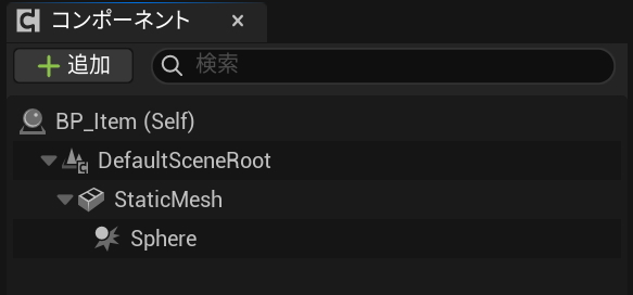 コンポーネントに+追加 > スタティックメッシュコンポーネント。