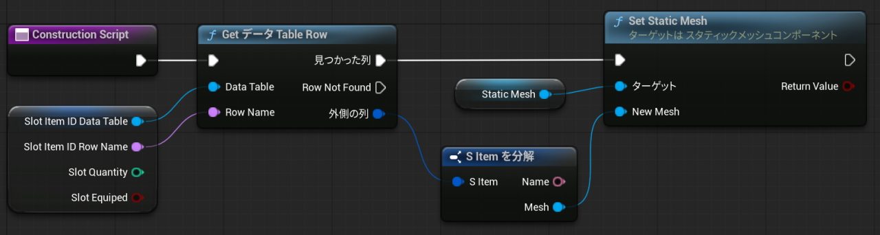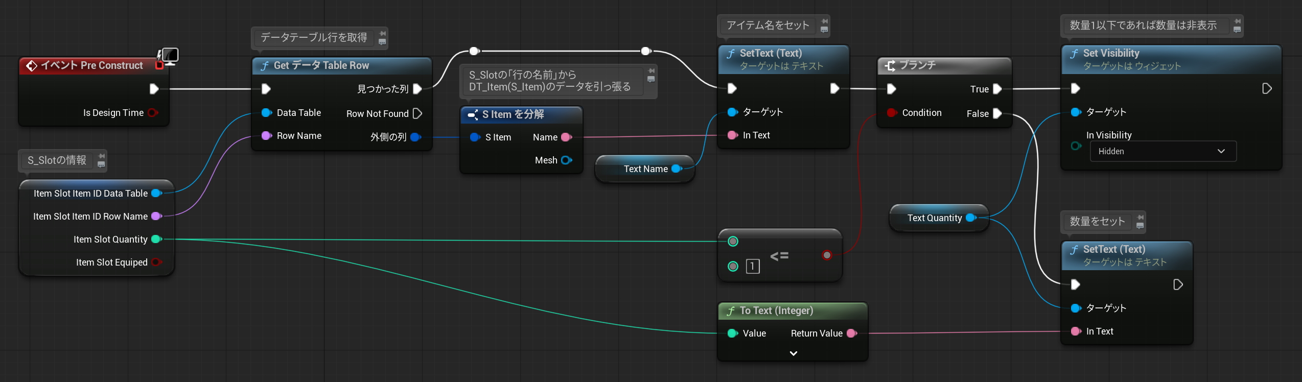先に作成したS_Itemで設定したものは基本的にゲームプレイ中に変化がない要素です。