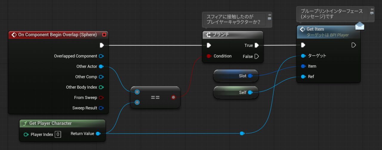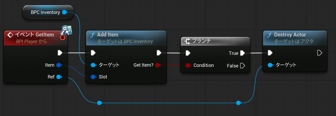 ・アイテム入手がTrueだったら、アイテムアクタをDestroyします。