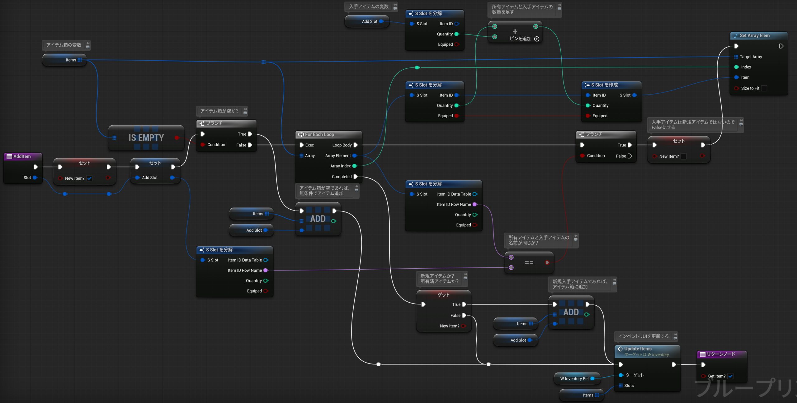 関数 Add Itemは、アイテムを入手した時に起動します。