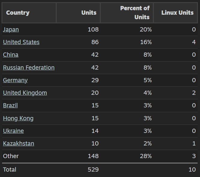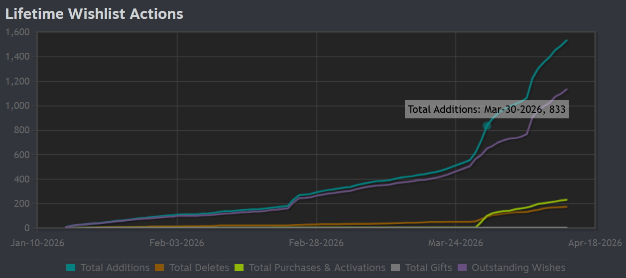 発売日である3月30日時点でのウィッシュリスト数が833件でしたから、販売本数529本というのは非常に高い割合です。