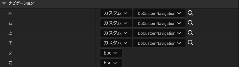 EUINavigationでスイッチのDownの実行ピンの先を見ると、現在のFocusNumberが0であった場合、+2する設定になっています。これにより2の「そうび」を選択させることができます。