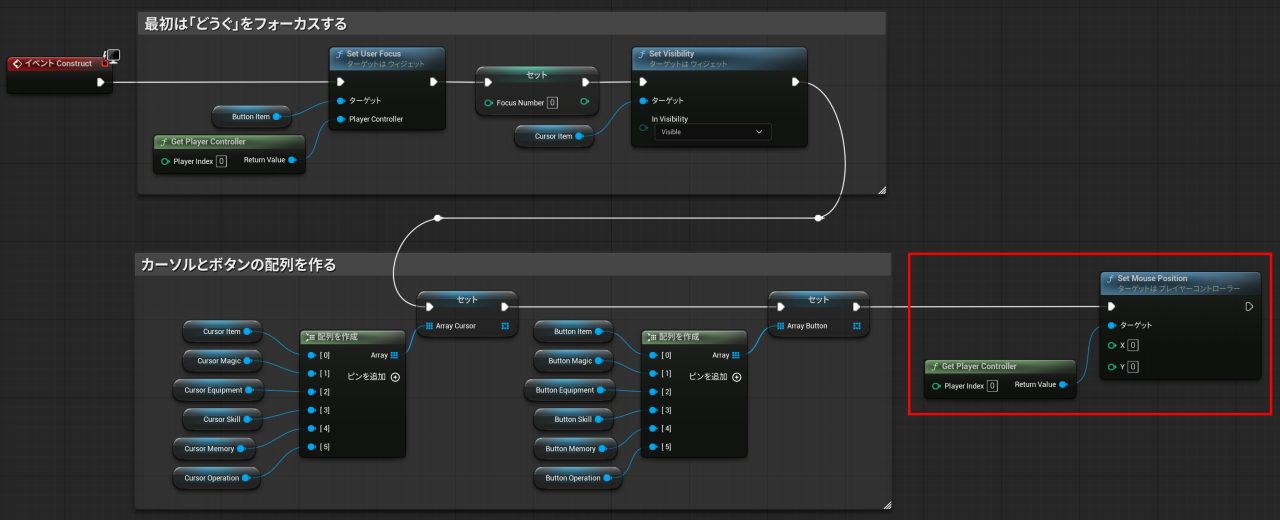 ・Set Mouse Potisionで座標を0にするだけです。メニューを開いた時、マウスカーソルは画面左上に配置されます。