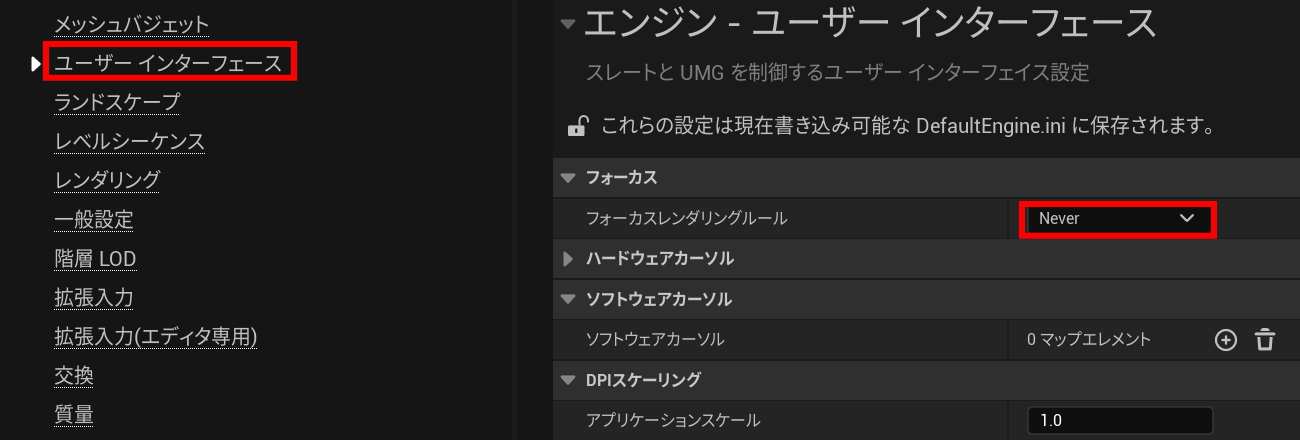 フォーカス > フォーカスレンダリングルール:Never に設定。