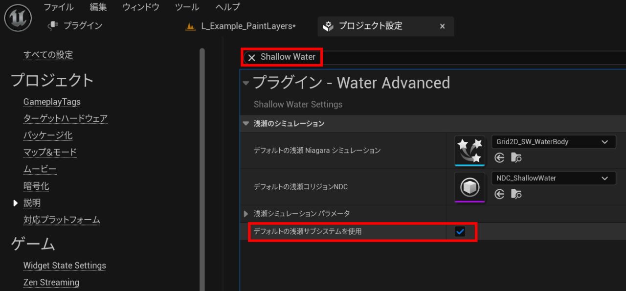 ShallowWaterRiverを選択した状態で詳細を見て、