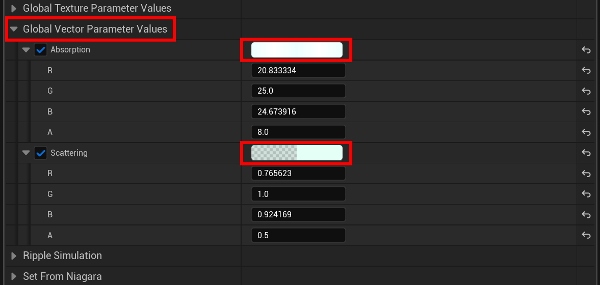 SW_Water_Material_Riverを開き、Global Vector Parameter Valuesを開きます。